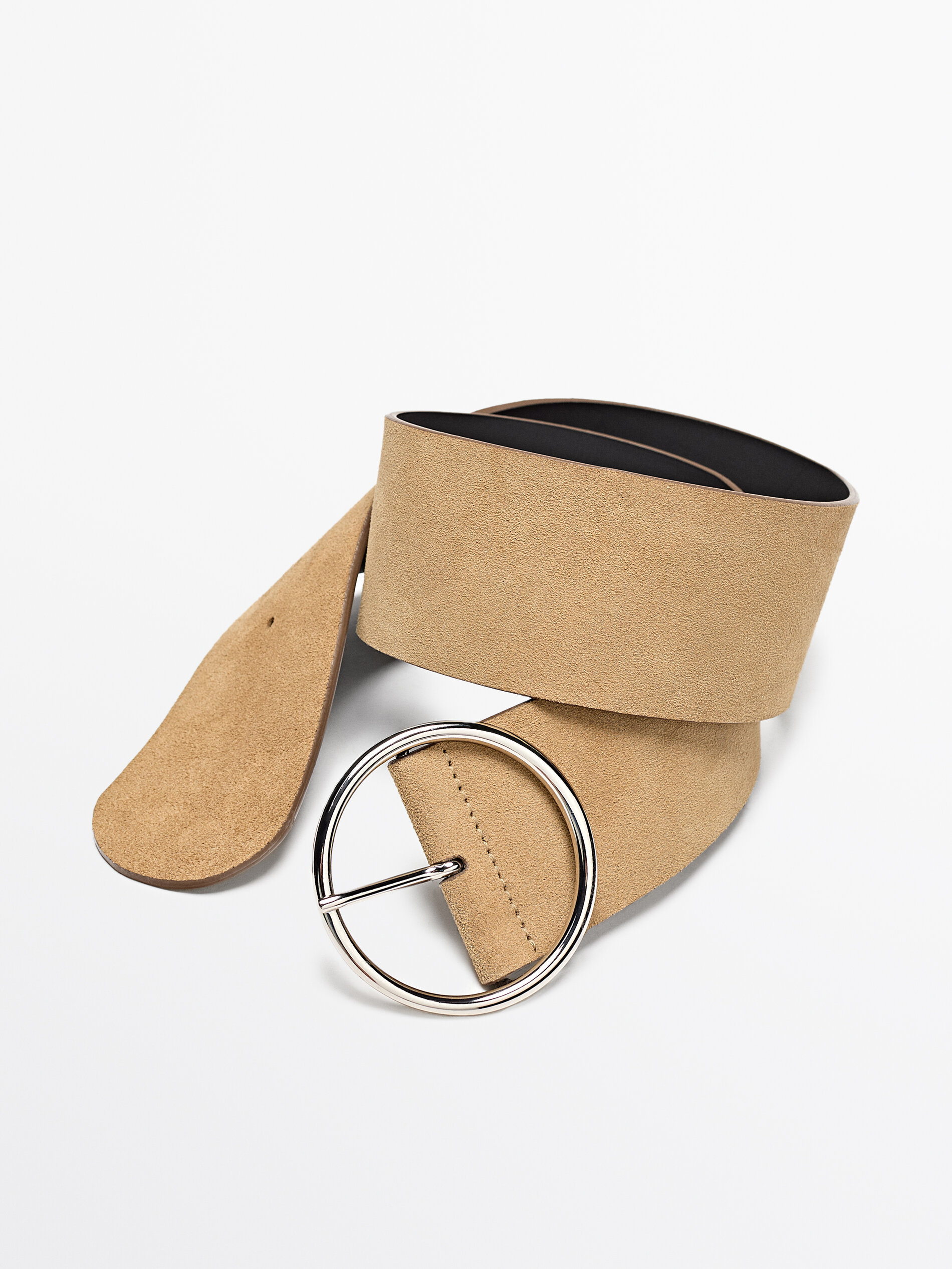 Кожаный ремень с круглой пряжкой · Песочный · Аксессуары