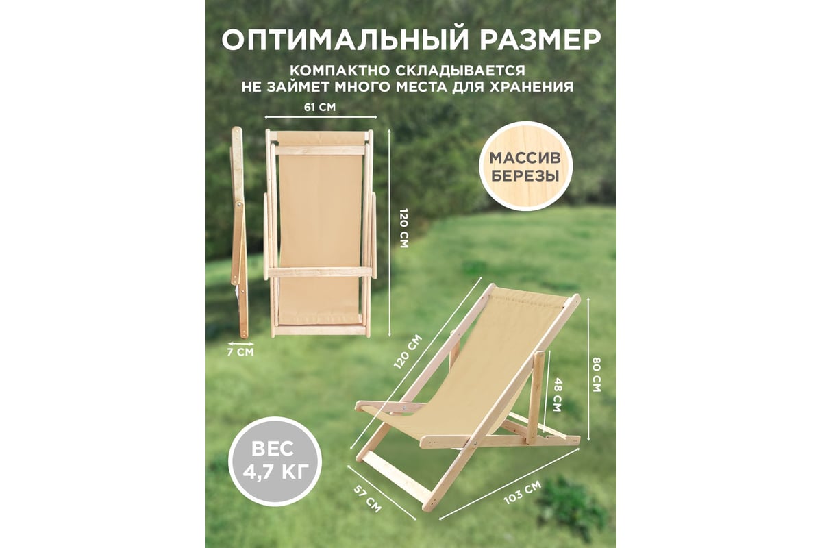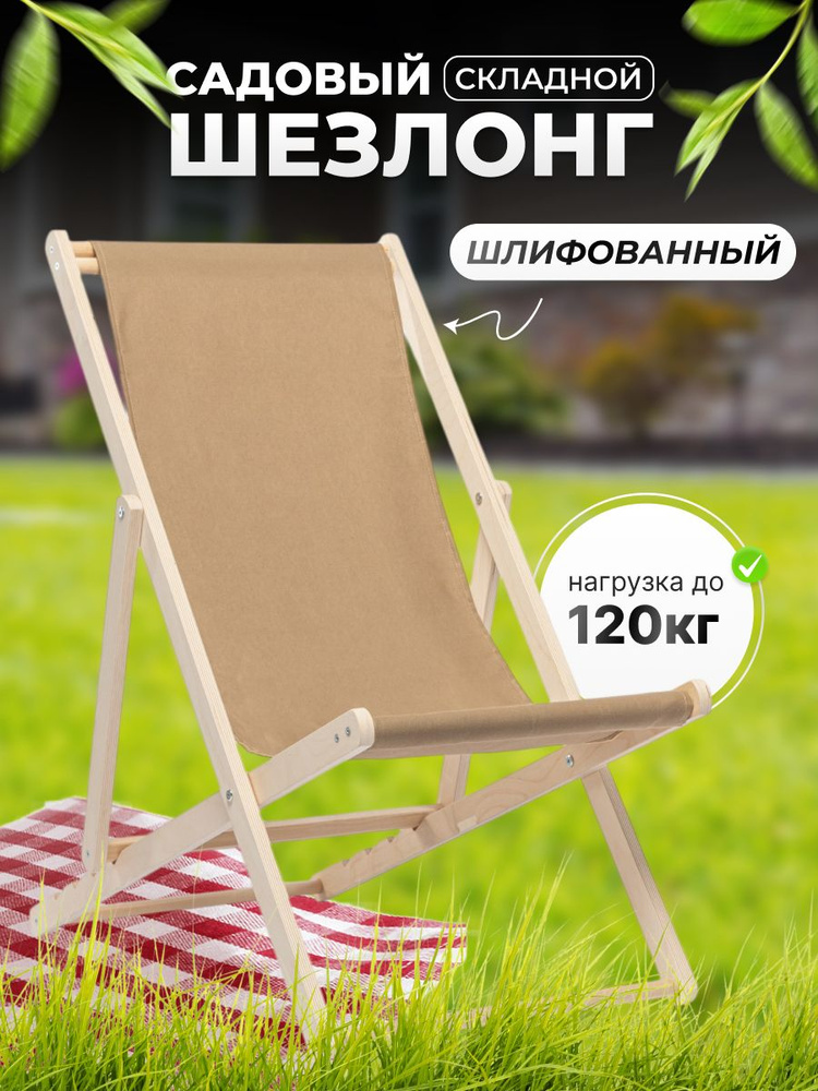 Шезлонг складной деревянный, бежевый купить на OZON по низкой цене
