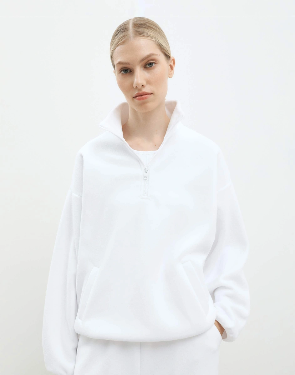 Молочный свитшот oversize с воротником на молнии GAC023376-1 купить по