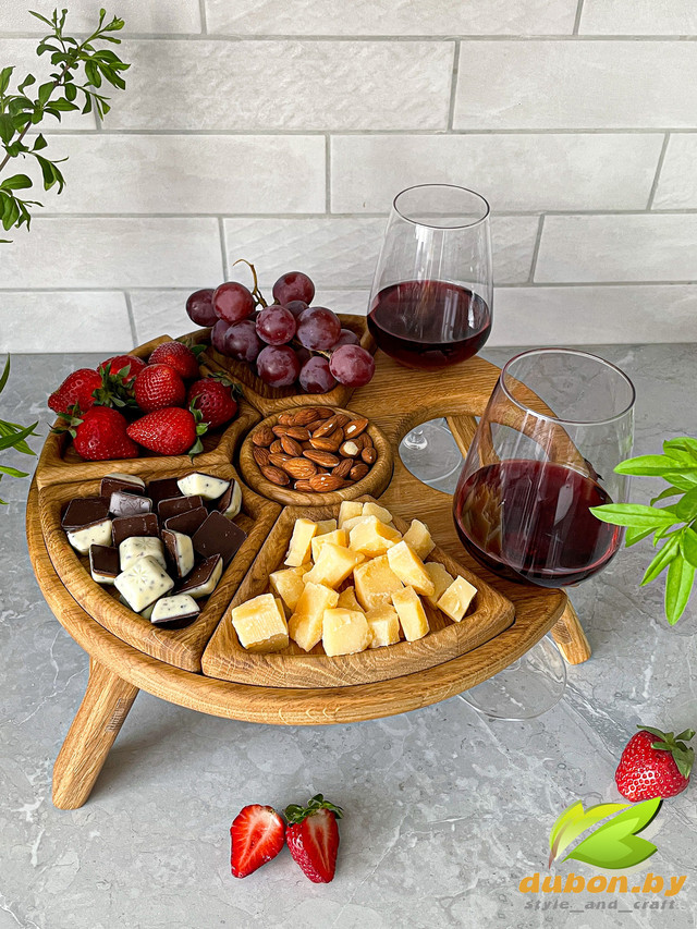Складной составной винный столик из Дуба на 1 бутылку и 2 бокала