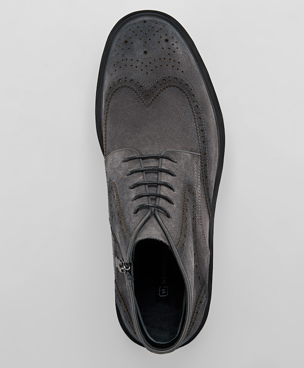 Ботинки из натуральной замши на шнурках и молнии в сером цвете SS-0746
