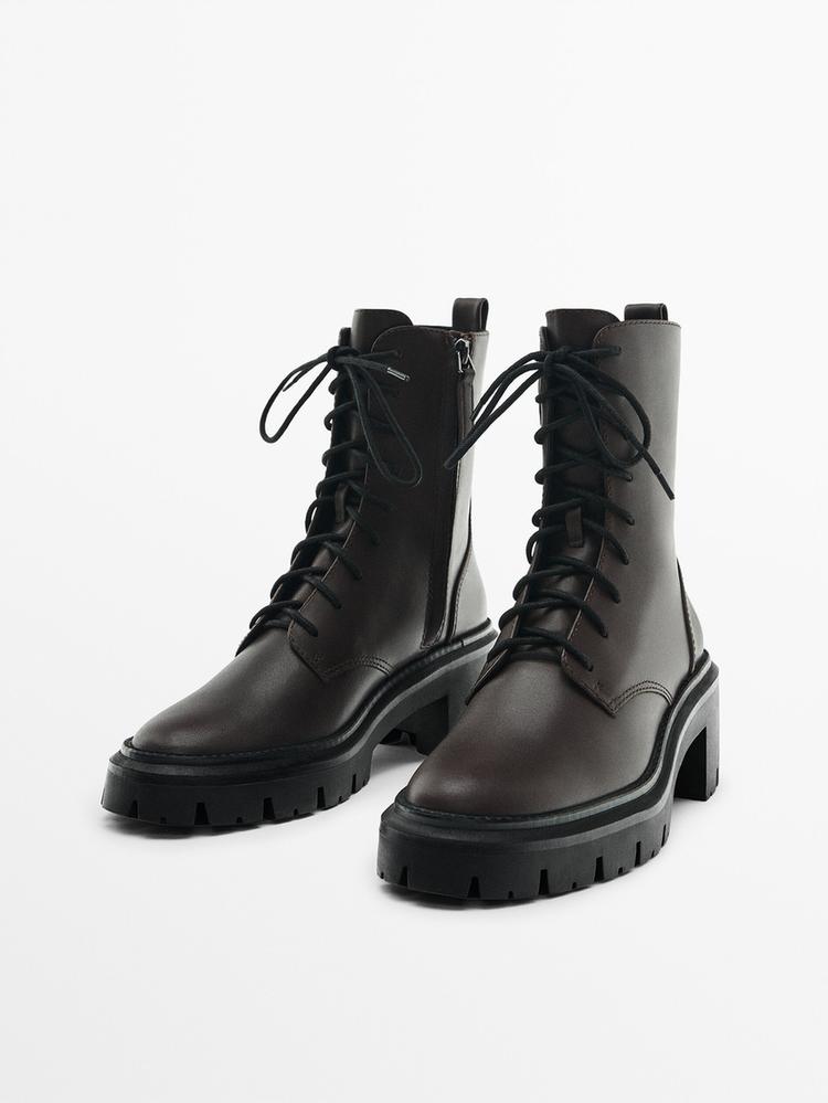 Ботинки со шнуровкой на рифленой подошве · Коричневый · Сапоги И