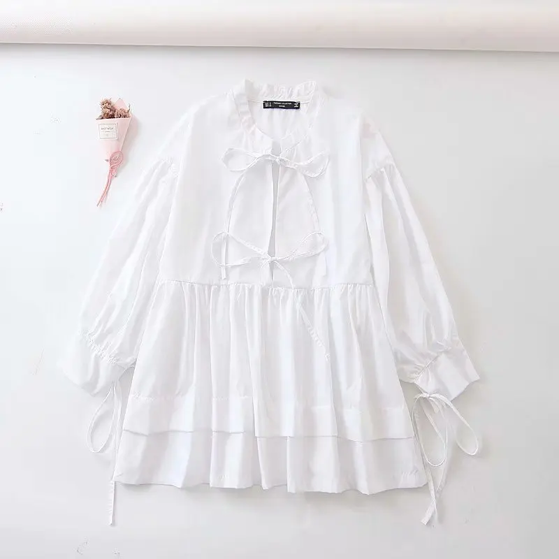 Женские Элегантные повседневные свободные блузки с бантиком и завязками