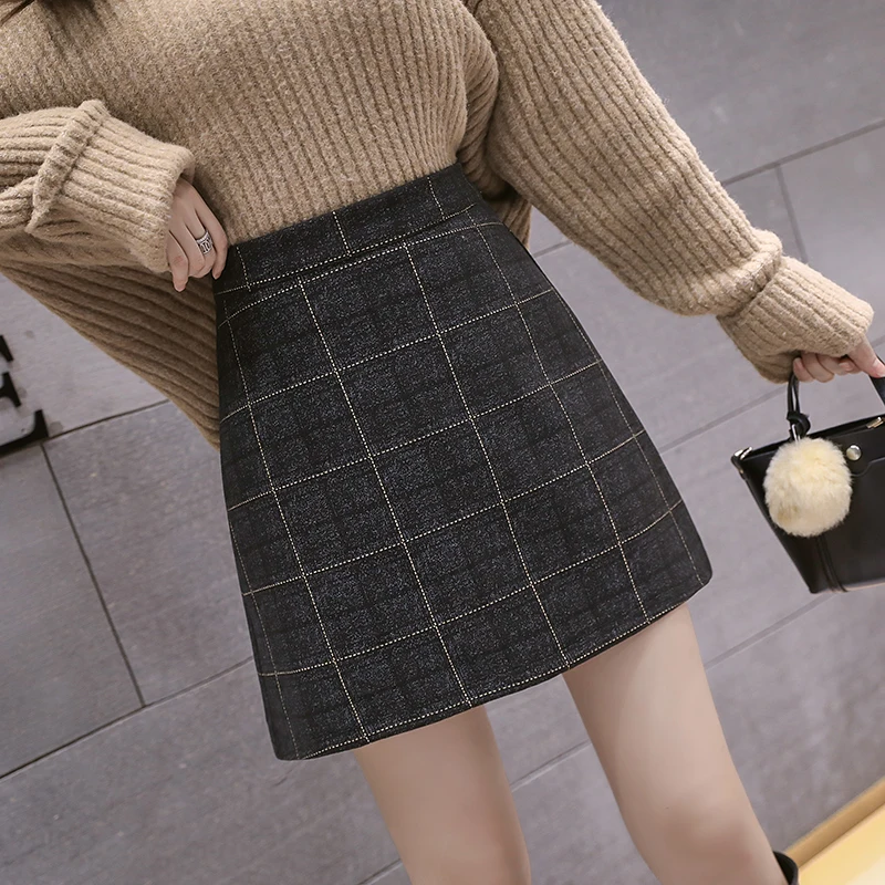 Женская клетчатая юбка с высокой талией, шерстяная юбка, короткая юбка